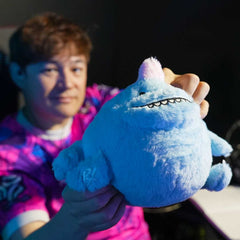 The fluffiest champion on the team. Meet Bok, Paper Rex's adorable blue dino mascot with his signature cheeky grin and soft pink spikes.